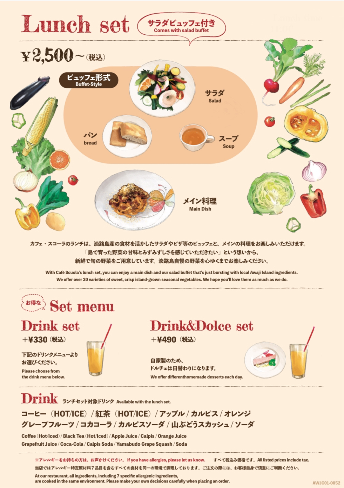 淡路麺業の生パスタを使用した本格パスタ、季節のサラダ付き