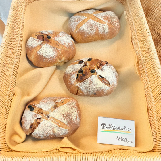 甘い栗と黒豆がたっぷり入ったカンパーニュ。