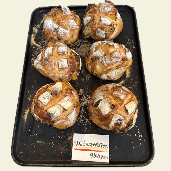 りんごの甘さとナッツの香ばしさが絶妙にマッチ。朝ごはんにもぴったりな贅沢なパンです。