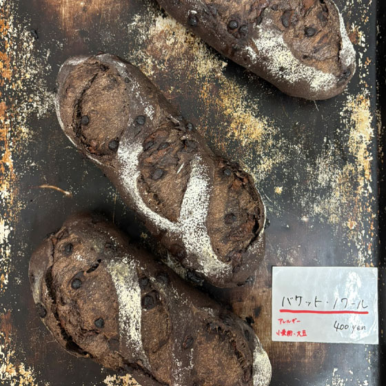 ココアを練り込んだフランス生地に、チョコチップをたっぷり加えました。