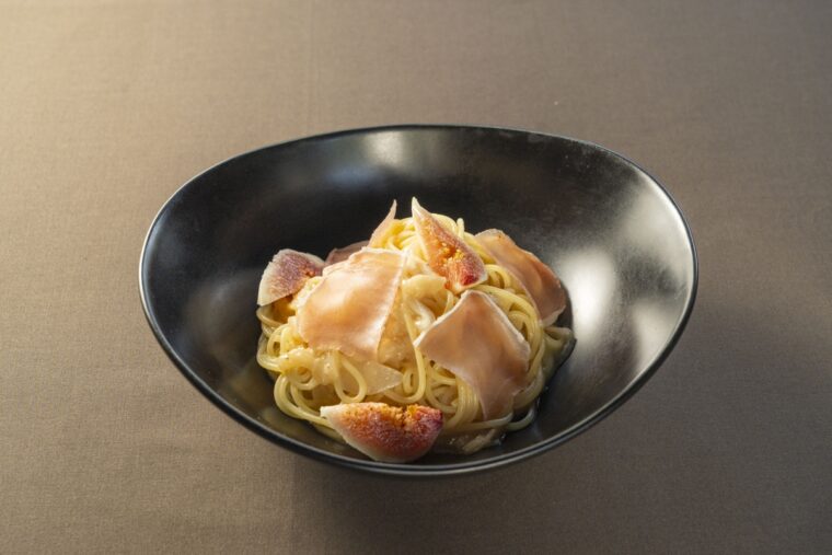 みずみずしい無花果の甘みと生ハムの塩気が絶妙なバランス。黒胡椒がアクセントになった大人のパスタです。