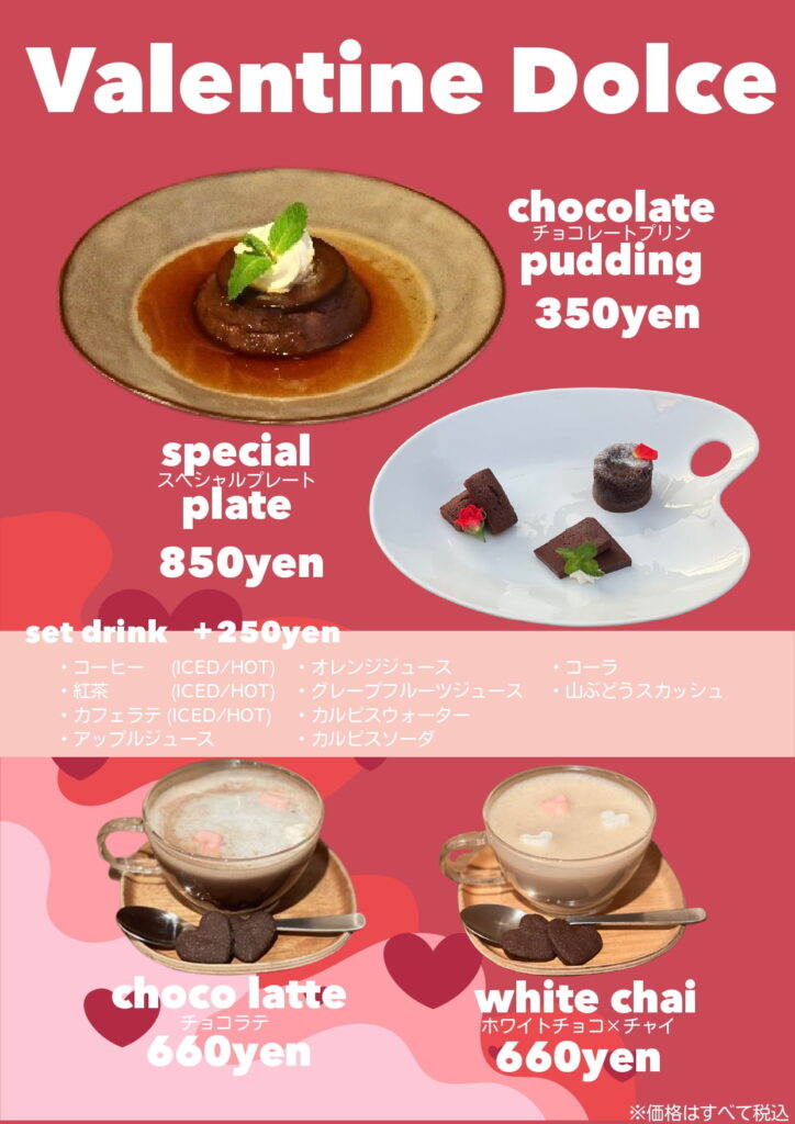 この時期だけの特別なバレンタインメニューを、ぜひカフェ・スコーラでお楽しみください。