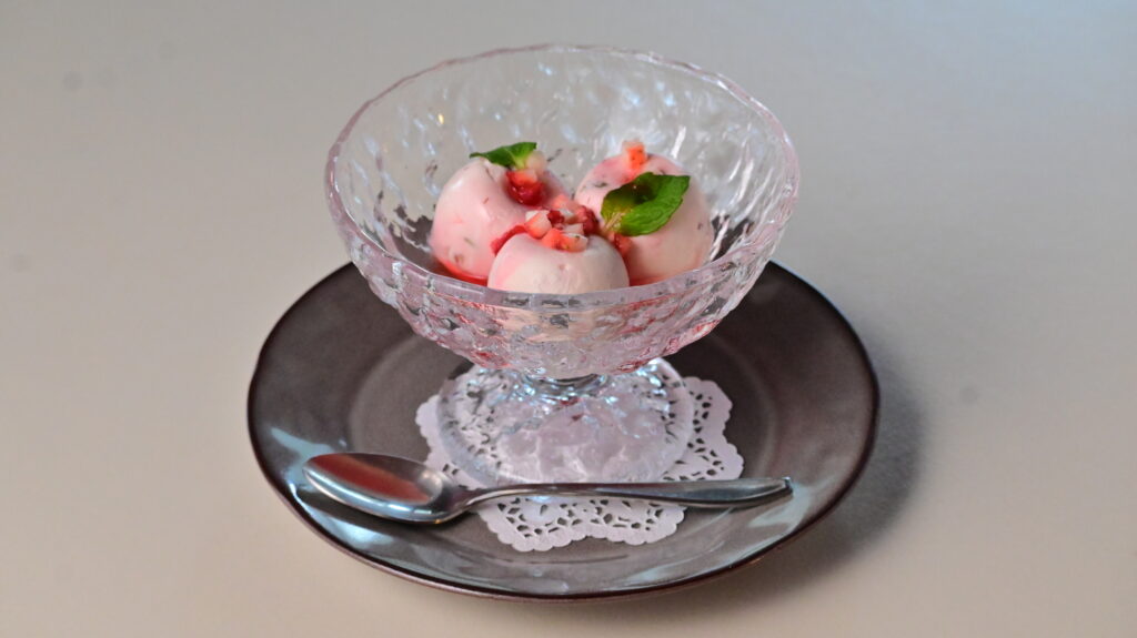 いちごの甘酸っぱさとクリームのコクが楽しめる、ひんやりとしたイタリアンドルチェ。