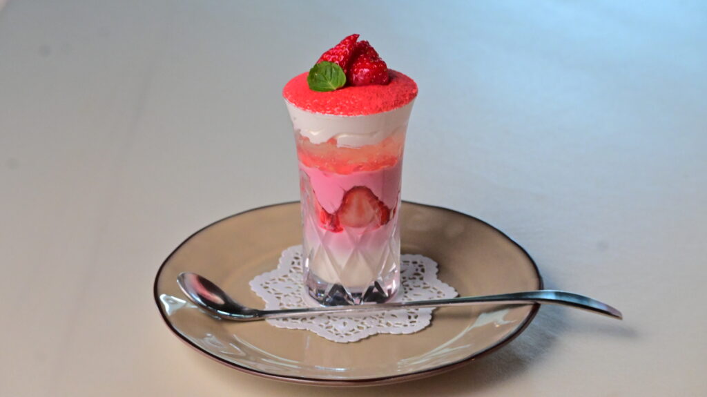 いちごをたっぷり使用した、層仕立ての華やかなグラスドルチェ。
