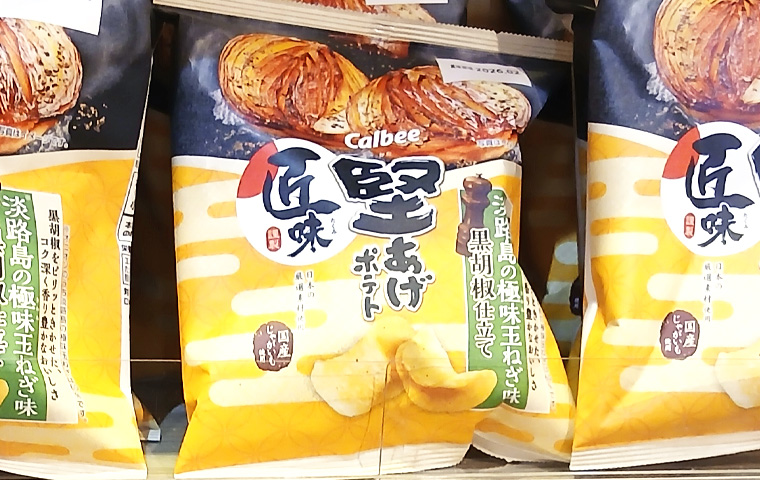 おなじみのカルビーの堅あげポテトに、期間限定商品で淡路島の玉ねぎを使った商品が登場しました。