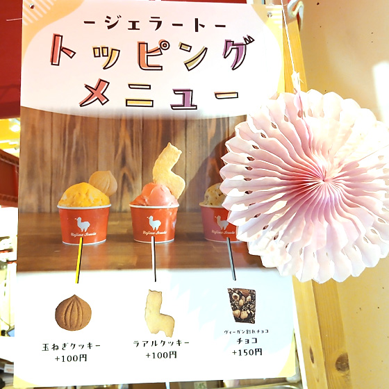 また、持ち帰りのジェラートも大人気。さらにはアルパカクッキーのトッピングもお楽しみいただけます。