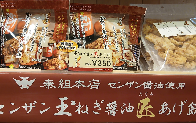 淡路島唯一の醤油蔵の逸品「泰組本店センザン醤油」を使用したあげ餅がこちら。