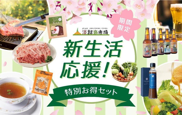 パソナ淡路島市場では、今月1日から4月30日までの期間、進学や就職、転勤など、新生活を迎える皆さんを応援する『新生活応援!特別お得セット』を販売いたします。