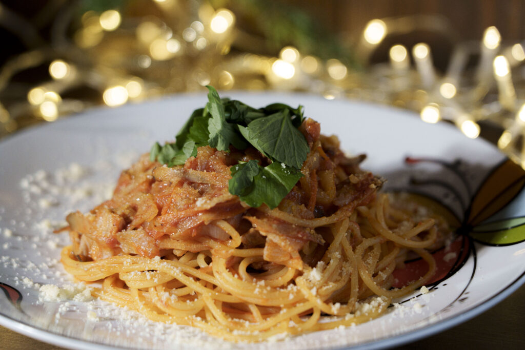 冬野菜とお肉のうま味をぎゅっと詰め込んだトマトパスタ。