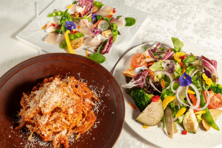 そして、シェアスタイルで楽しめる本格パスタなど、見た目の華やかさと満足感を兼ね備えた逸品がテーブルを彩ります。