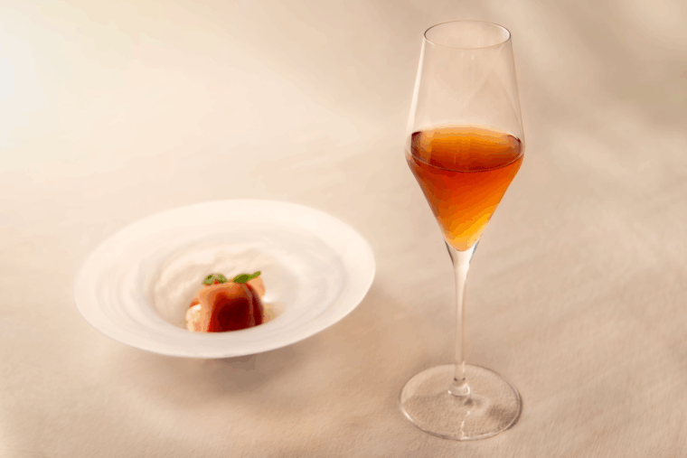 瑞々しいザクロの果汁に、繊細な泡が踊るスパークリングワインを合わせた、