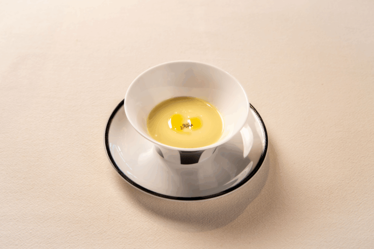 淡路島の豊かな大地で育った今が旬のさつま芋を、香り高い酒粕と合わせ、やさしくポタージュに仕立てました。