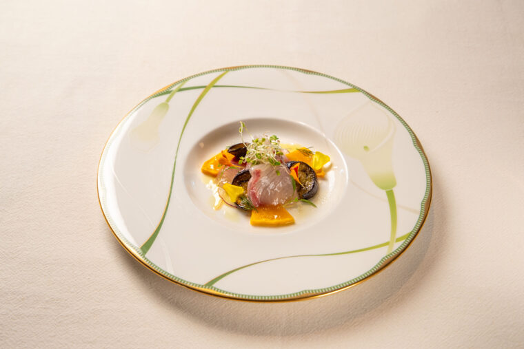 〔前菜〕旬魚のカルパッチョと蕪(もものすけ)のマリネ