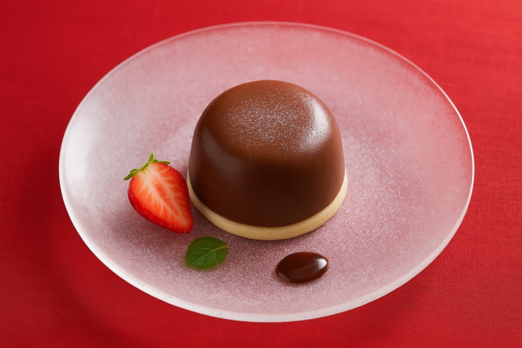 濃密でビターなショコラと、華やかな酸味を持つフランボワーズを合わせ、口どけ軽やかなムースに仕上げました。