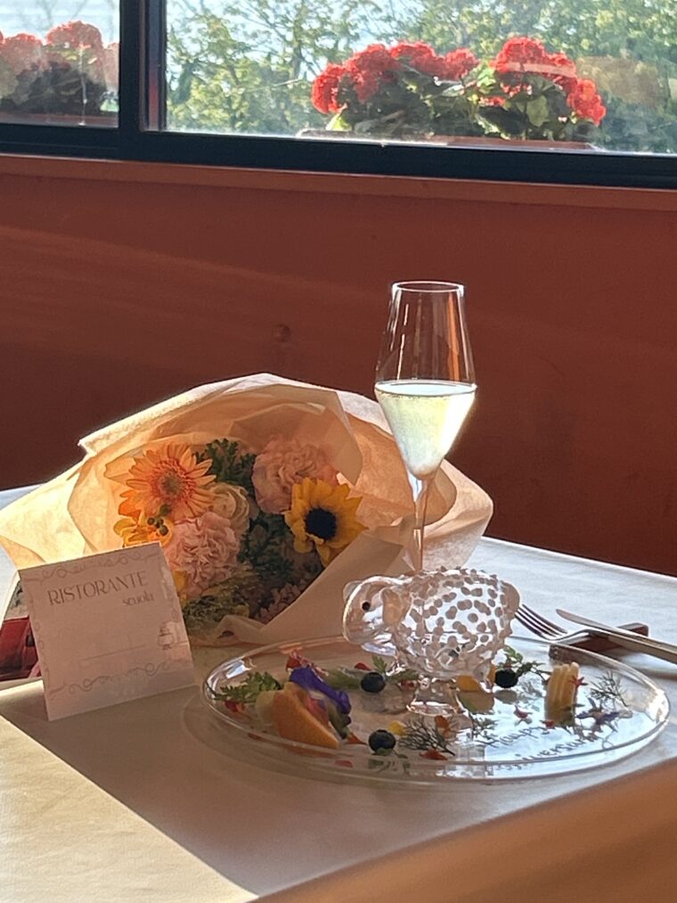 リストランテ・スコーラでは、皆様の素敵な記念日をお祝いする記念日コースをご用意いたしております。そんな特別な記念日コースからご予約特典のご紹介でございます。