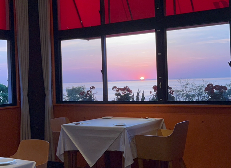 夕日を眺めながらお食事