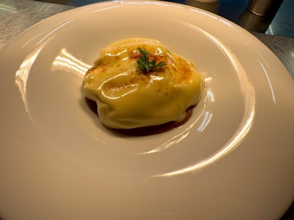 ただし当店ではオーブンなどは使わず、カスタードソースの上に砂糖をまぶしバーナーで炙るキャラメリゼを行っており、クリームブリュレのようなパリッとした食感をご堪能いただけます。