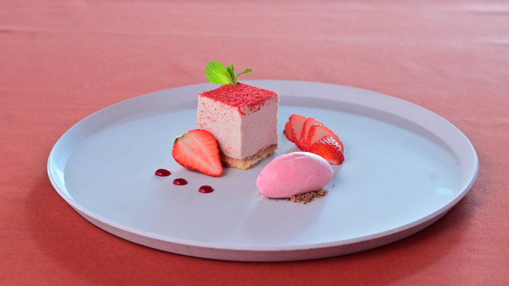 さらに、フレッシュな苺や苺のアイスを添えることで、さまざまな食感と温度のコントラストも魅力。しっとりとしたティラミスの口どけと、苺のフレッシュな酸味、ひんやりとしたアイスの甘みが重なり合い、最後まで飽きずに味わえるデザートに仕上がっております。