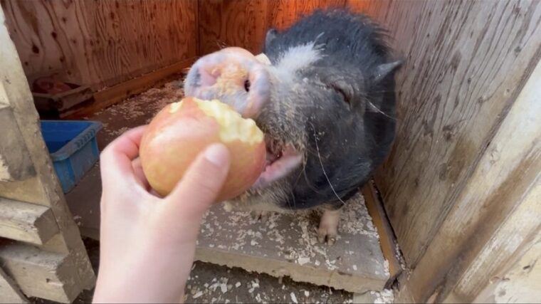 地面に埋まったお野菜をミニブタさんが掘り当てる!!