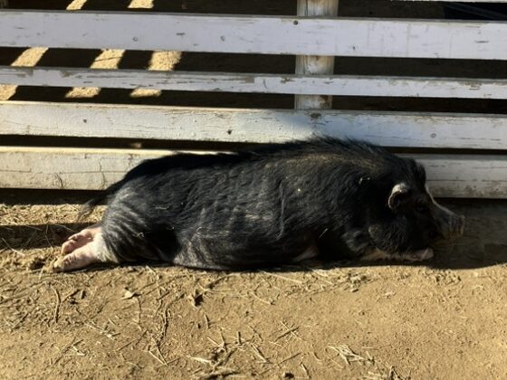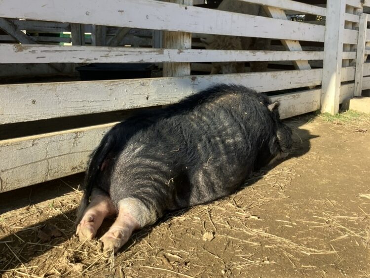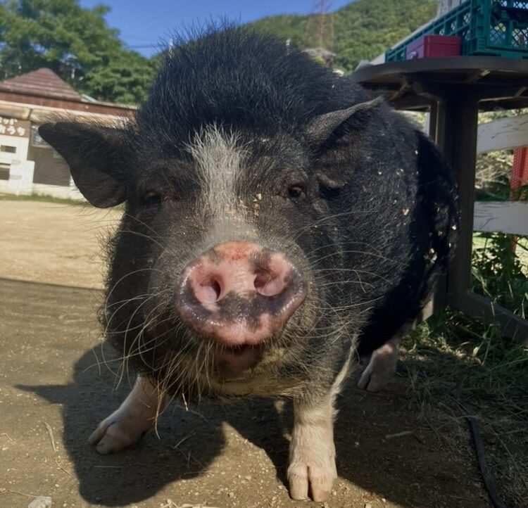 元気に園内さんぽをしていたミニブタのももちゃん。