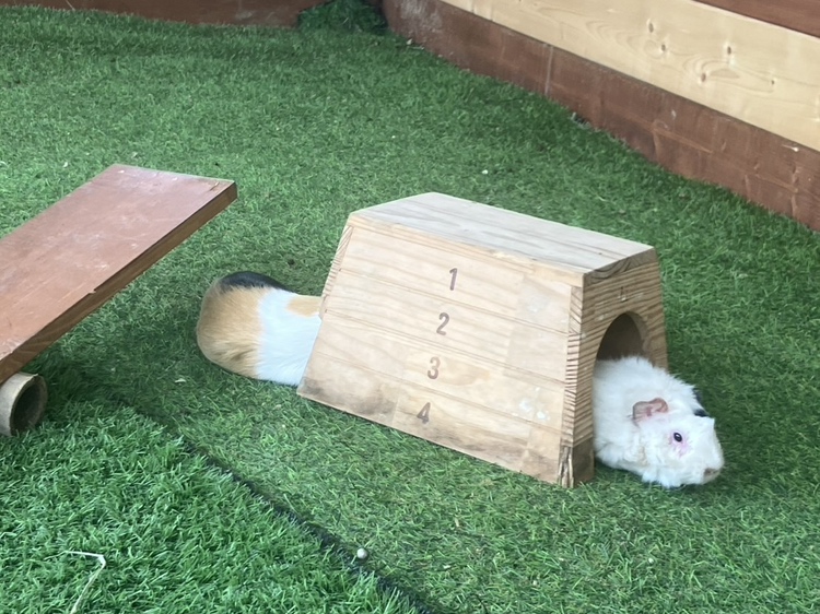 のじま動物園のふれあいひろばでは、今日もモルモットたちは元気いっぱいです!