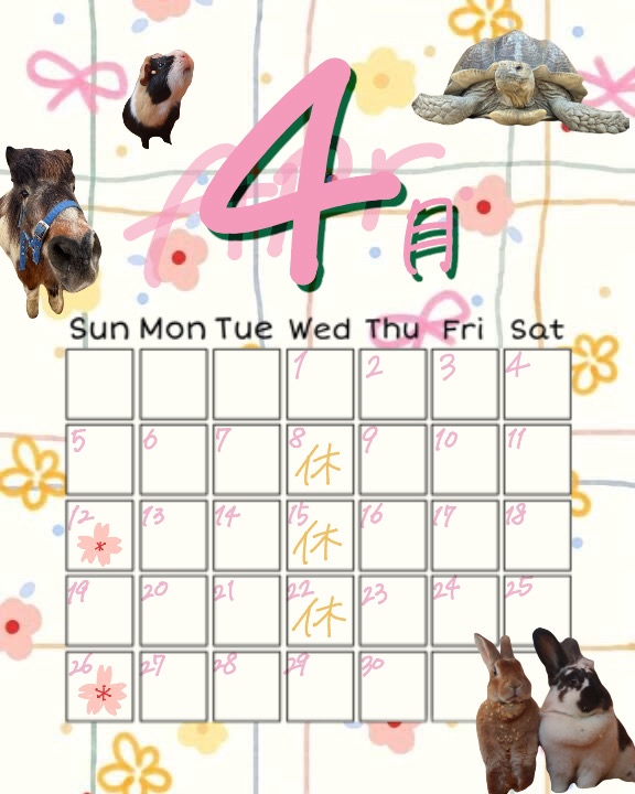 4月の営業時間と定休日は下記の通りとなります。